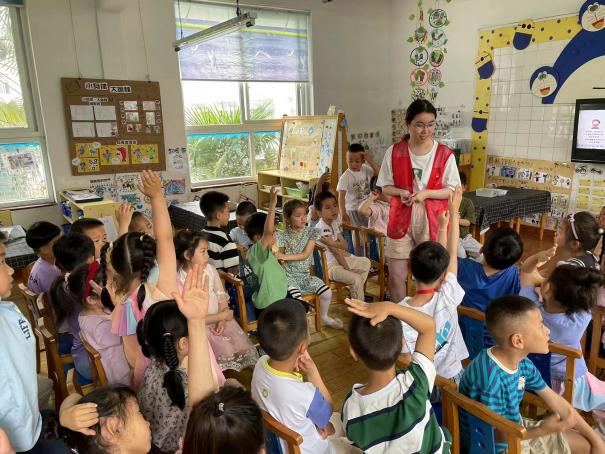 活动前,志愿者们精心准备ppt等材料,在课堂上生动有趣地向幼儿园小朋友们介绍了在道路上行走要注意哪些交通规则、坐车时要怎样注意安全等交通安全知识,小朋友们在志愿者的带领下亲手绘制了常见的交通标识。