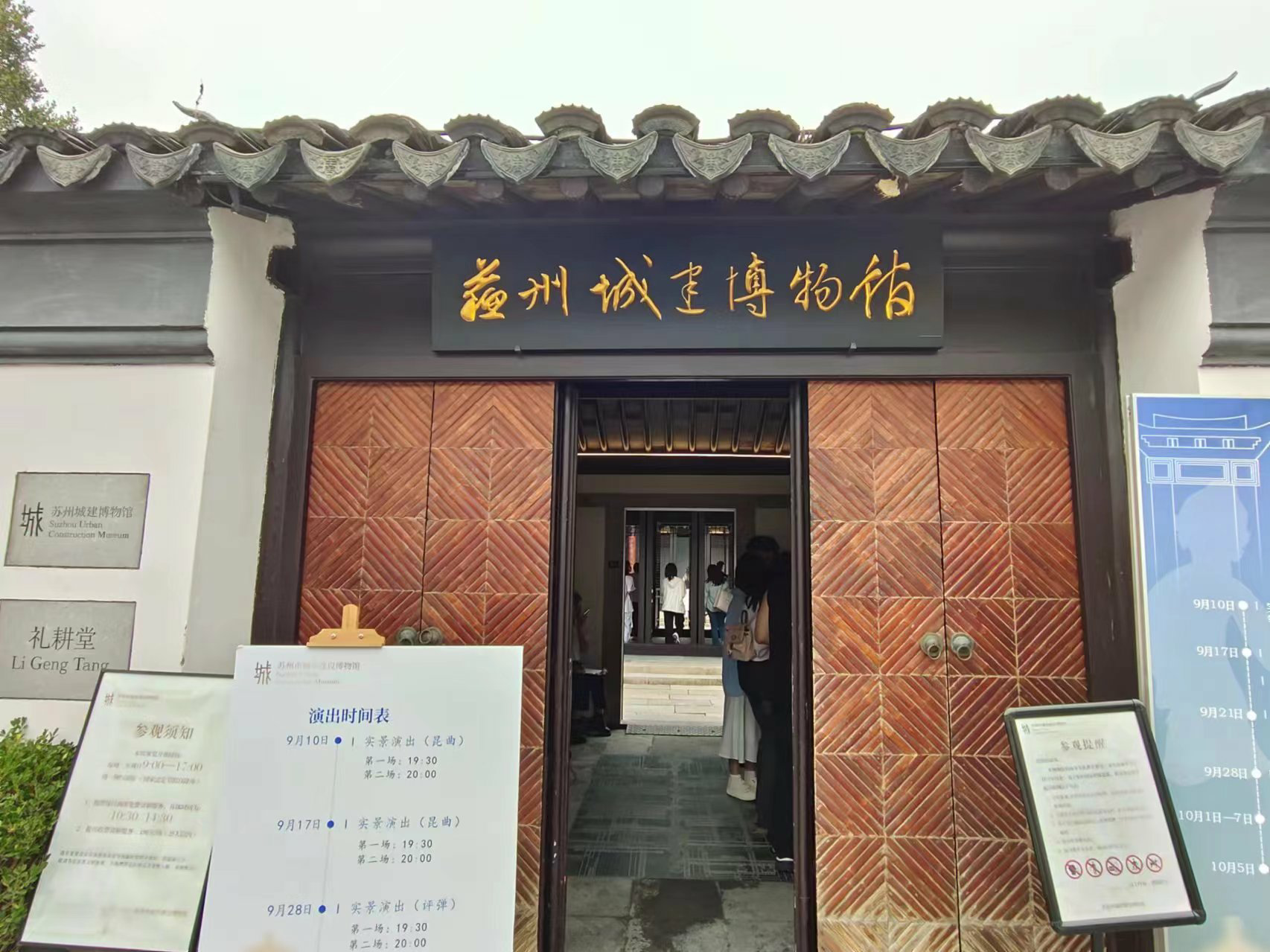 下午14时,全体学员准时在苏州城建博物馆前集合。这座小型古宅承载着苏州2500年的城建历史,展示了深厚的历史文化底蕴。博物馆设有五大展厅:“城纪千载厅”利用《越绝书》,辅以三维影片《宋元格局》,再现了宋元时期的苏州风貌;“现代苏城厅”通过图片和文字记录了近现代苏州的城市保护与建设历程;“城市生长厅”采用互动展示,连接不同历史阶段的标志性建筑,体现了苏州现代化的成就;“城市会客厅”保留了潘宅正厅——礼耕堂的原貌,让人感受到历史的厚重;“百馆之城厅”以手绘形式展现“现代苏州城建图”,全面展示了苏州的百园百馆与名人故居。