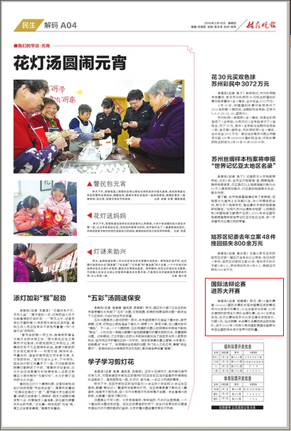 姑苏晚报报道:国际法辩论赛 进苏大开赛-必威西汉姆联