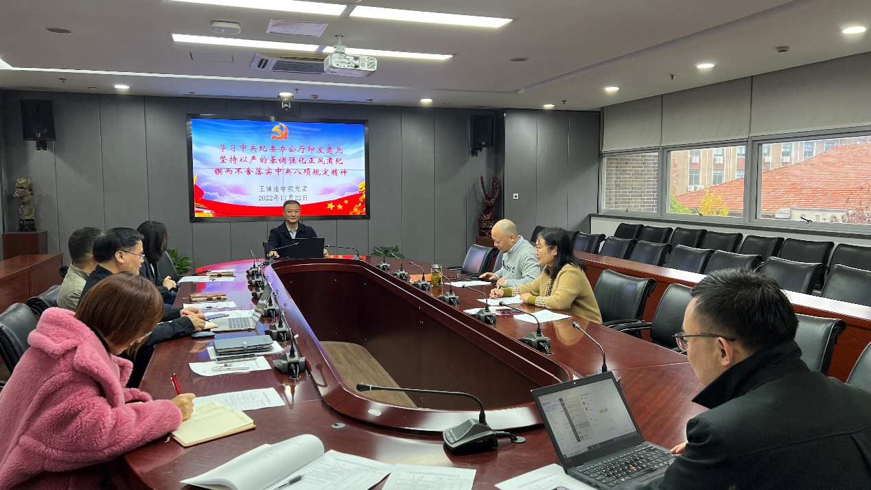 会议第二项议程是学院行政副院长、纪检委员沈晔领学《中央纪委办公厅印发意见 坚持以严的基调强化正风肃纪 锲而不舍落实中央八项规定精神》。他指出,要坚持严的基调,以钉钉子精神纠治“四风”;要坚持一体推进不敢腐、不能腐、不想腐,推动落实中央八项规定精神一抓到底。