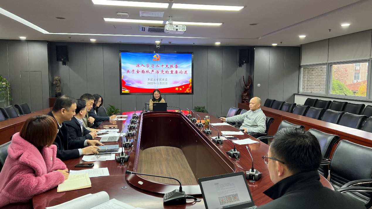 最后,孙宁华作重要讲话。她强调,作为党务干部,要高度重视、充分认识从严治党的重大意义,结合学习贯彻党的二十大精神,进一步深入领会习近平总书记关于从严治党重要论述的丰富内涵,将从严治党贯穿学院建设全过程;要立足职责勇担使命,不断加强自身建设,做到学法、懂法、用法,推动学院工作高质量发展。