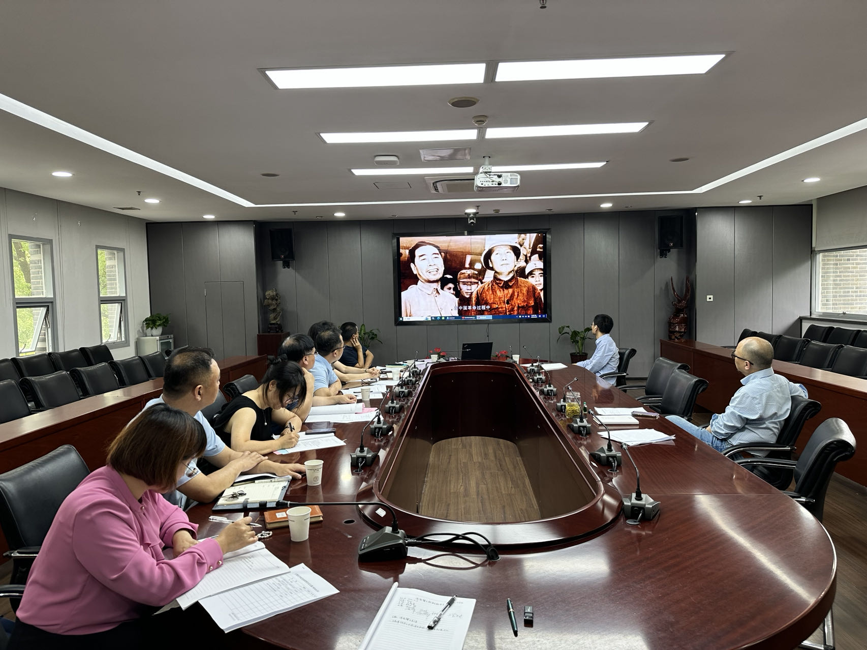 会议进入第二议程,全体与会人员共同观看学习《严于律己的杰出楷模——周恩来》专题片,通过回顾周总理一生严于律己、清正廉洁的光辉事迹,激励大家向这位杰出的共产党人学习,将严于律己的精神内化于心、外化于行。