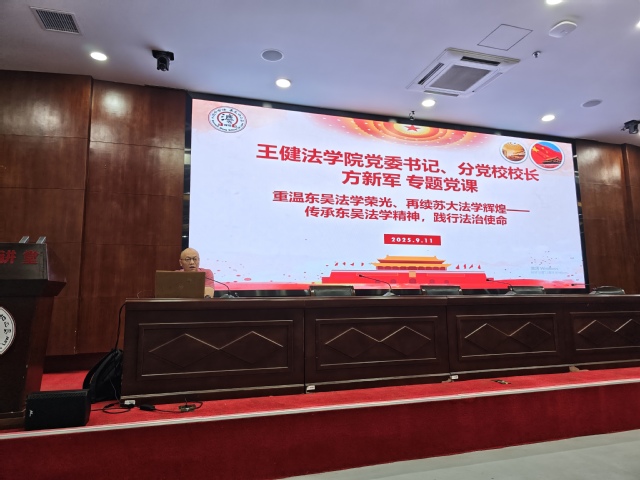方新军书记首先为开班仪式致辞,他向新加入分党校的全体学员和2025级新生表示热烈欢迎和亲切关怀,并寄托了殷殷期盼。他强调,今年是东吴大学法学院创建110周年,法学专业的录取分数也再创新高,体现了苏大法学院的强劲实力和考生的高度认可。他寄语新时代的法学学子们,应当深刻领会党的二十大精神,坚定理想信念、站稳政治立场,努力成为社会主义法治事业的忠实崇尚者、自觉遵守者和坚定捍卫者,同时珍惜学习机会,严守纪律、勤思善悟,将个人成长融入国家法治建设和学院发展大局之中。