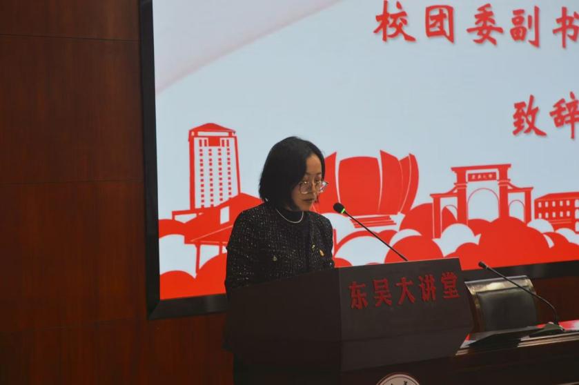 院党委副书记朱春霞老师充分肯定了学院团委近年来在思想引领、组织建设、文化育人和社会实践等方面取得的显著成就,并对工作提出了四点要求:一是坚持以思想引领为核心,牢牢筑稳青年理想信念的根基;二是紧扣中心工作,助推学院实现高质量发展目标;三是关注青年需求,不断提升服务学生的能力和水平;四是深化改革创新,全面激发组织的活力与战斗力。她寄语团委:以本次大会为新的起点,团结带领广大青年学子在新时代新征程中勇毅前行、争创佳绩,为学院的高质量发展注入青春力量!