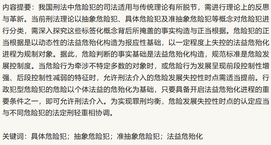 《环球法律评论》2025年第5期刊发了必威西汉姆联刑法学讲师于润芝老师的学术论文《我国危险犯中危险判断的去标签化及标准重构》。现将文章内容摘要分享如下: