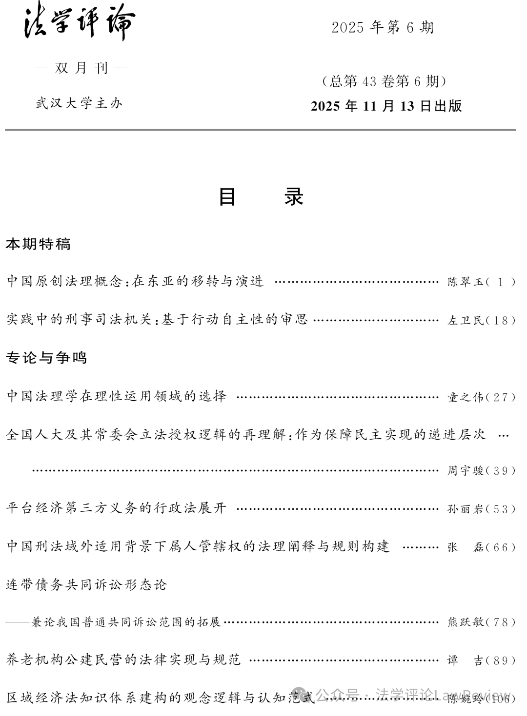 文摘来源:《法学评论》2025年第6期要目