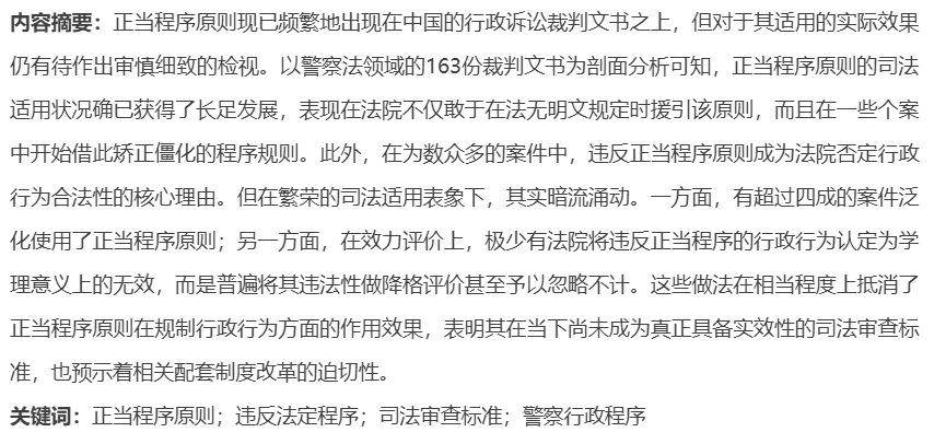 《法学评论》2025年第6期刊发了必威西汉姆联暨公法研究中心副教授施立栋老师的学术论文《行政诉讼中正当程序原则适用实效之检视——以163份警察裁判文书为分析样本》。现将文章内容摘要分享如下: